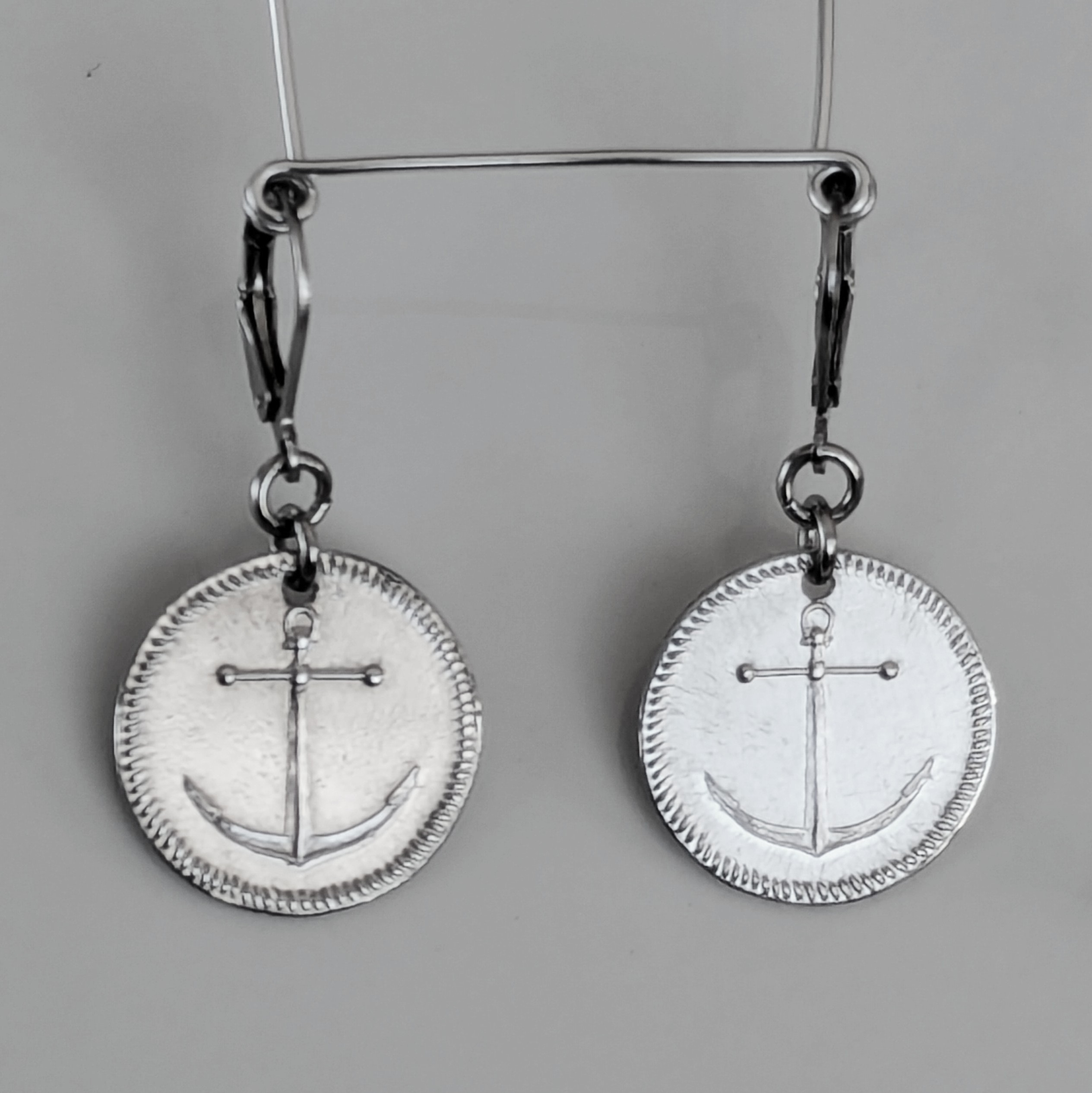Hand struck aluminum earrings on surgical steel leaver backs. 19-20mm wide x 35mm long.