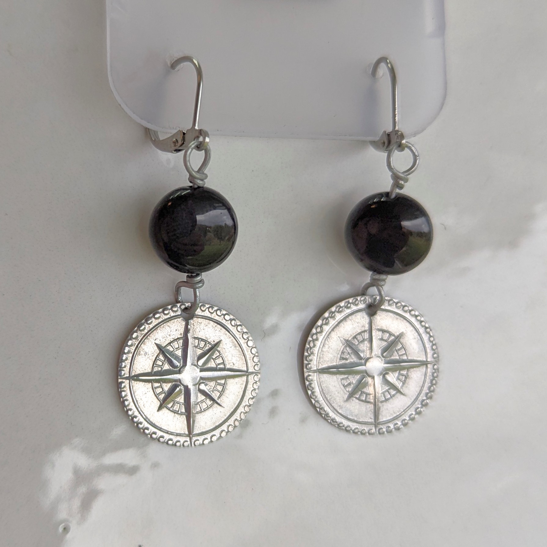 Hand struck aluminum earrings with gem beads on surgical steel leaver backs. 19-20mm wide x 50mm long.