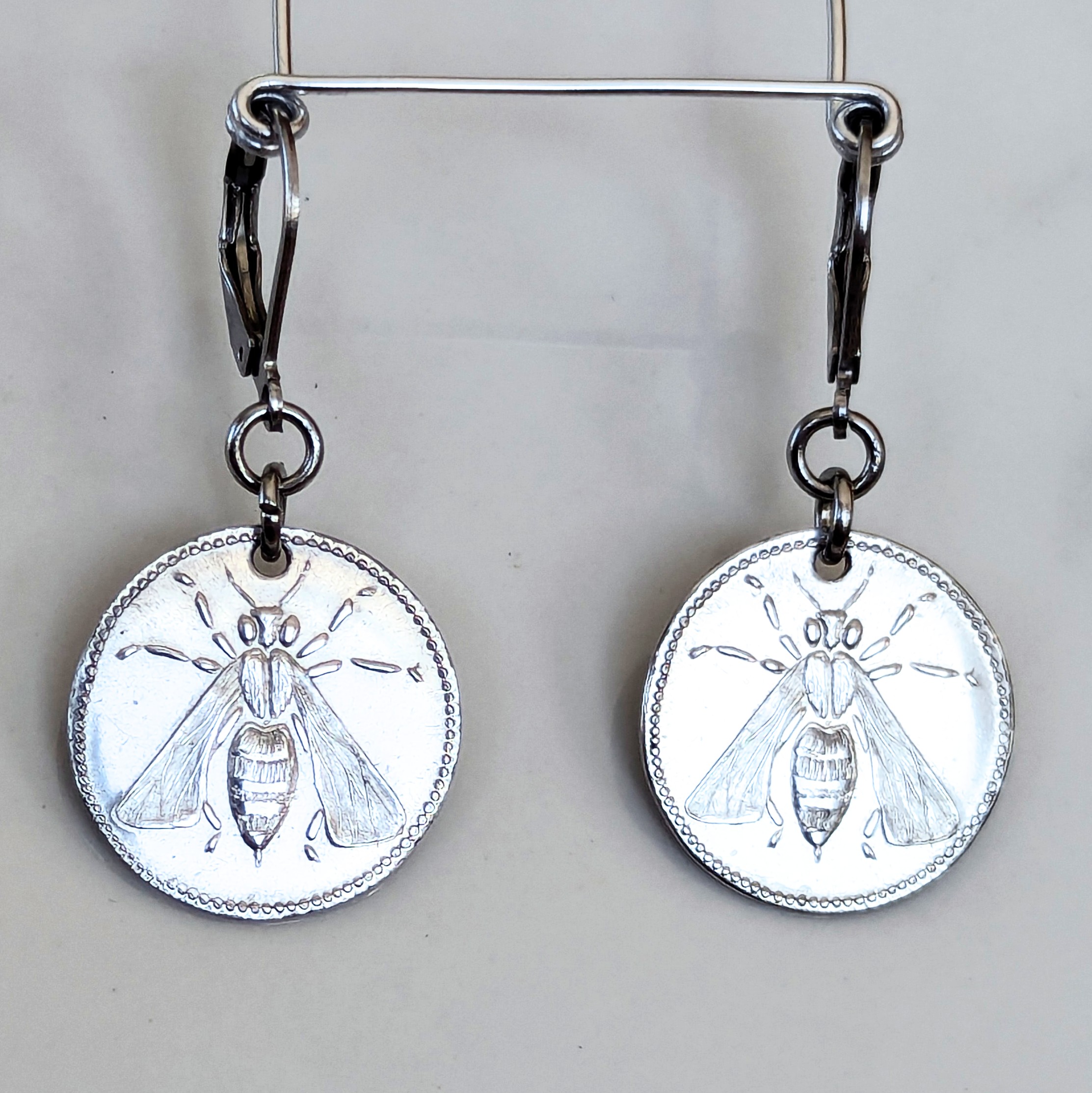 Hand struck aluminum earrings on surgical steel leaver backs. 19-20mm wide x 35mm long.