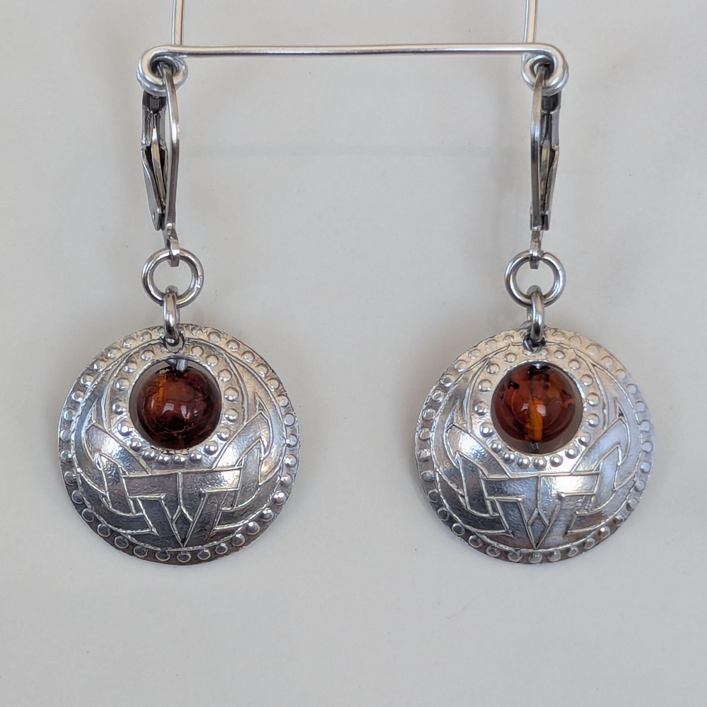 Hand struck aluminum earrings with gem beads on surgical steel leaver backs. 19-20mm wide x 50 mm long.